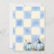 Celebrate your little pumpkin with this charming fall baby shower invitation! Designed with a cosy rustic vibe, this card features watercolor blue pumpkins accented with autumn florals against a soft blue-and-white gingham check background. The bold retro-inspired “Baby Shower” text makes it playful yet elegant, perfect for a fall or Halloween-themed baby shower. Personalise with your event details including name, date, time, and RSVP for a unique keepsake. A lovely choice for expecting parents who love farmhouse style, rustic charm, and seasonal celebrations.