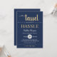 Rustic Blue Gold Tassel Script Graduation Party Invitation