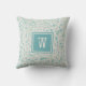 Rustic Blue Green Abstract Floral Pattern Monogram Cushion