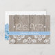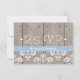 Pretty pale blue HYDRANGEA WEDDING RESPONSE CARDS WITH a wooden fence, antique damask pattern lace background and stitched blue ribbon look design ON THE BACK THAT CAN BE CUSTOMIZED TO SAY WHAT YOU LIKE ON THE BACK. This RSVP is perfect for a country, farmhouse, garden party or barnyard style wedding, anniversary party or engagement dinner. Designed by Chrissy H. Studios, LLC. All rights reserved.