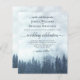 This beautiful wedding invitation is the perfect choice for rustic beauty and charm on a budget. The design features a mountainside shrouded in mist or fog and covered with blue pine trees. Inexpensive, low cost, and great for an outdoor or backyard ceremony.