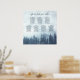 This 7 table wedding seating chart is simple, elegant, romantic and chic. The rustic design features a mountain scene of blue spruce or pine trees shrouded in mist or fog, with a fancy script calligraphy title reading "please find your table." There is space for the names of the couple and the wedding date. This seating chart has table assignments for 70 guests - 10 people at each table. Great way to make your reception beautiful while helping your guests find the right seat.