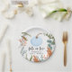 Whimsical "fall in love" baby shower paper plate featuring illustration of a blue pumpkin with fall botanicals.