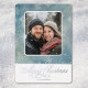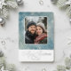 Share your holiday cheer in style with this winter wonderland Christmas card, featuring a frosty teal and white modern snowfall background and a rounded corner silver foil frame for your favourite family or couple photo. Elegant silver foil script on a soft white background delivers your holiday greetings, while your last name adds a personal touch. Created by Simply Farmhouse Press.