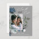 This beautiful rustic watercolor floral one photo wedding save the date postcard features white hand lettered calligraphy script and a blue and white boho bouquet on a soft grey background.