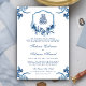 Rustic Blue Watercolor Floral Crest Muslim Wedding Invitation