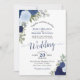 This beautiful wedding invitation features a rustic boho chic design with hand painted watercolor roses in shades of dusty blue, indigo, and navy. The elegant bouquet includes sprigs of lavender, eucalyptus, baby's breath and other leaves foliage and greenery all on a classic white background. Wonderful way to invite your friends and family to be a part of your special day.