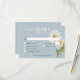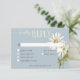 Introducing our charming wedding response card with dinner options, designed to add a touch of rustic elegance to your special day. This exquisite design features a soft dusty blue background, complemented by a delicate white text box outlined with a thin floating frame. Crowned by a stunning spray of watercolor white and yellow daisies and delicate blue wildflowers, this design sets the perfect tone for your celebration. The soft hues and rustic design capture the essence of a countryside romance, making it an ideal choice. Created by Simply Farmhouse Press.