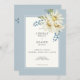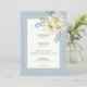 Introducing our charming wedding invitation, designed to add a touch of rustic elegance to your special day. This exquisite design features a soft dusty blue background, complemented by a delicate white text box outlined with a thin floating frame. Crowned by a stunning spray of watercolor white and yellow daisies and delicate blue wildflowers, this design sets the perfect tone for your celebration. The soft hues and rustic design capture the essence of a countryside romance, making it an ideal choice. Created by Simply Farmhouse Press.