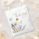 Discover the epitome of rustic elegance with our rustic bridal shower favour bag, where timeless beauty meets nature's delicate grace. Against a pristine white backdrop, a hand-painted watercolor bouquet emerges, showcasing a harmonious blend of dusty blue and soft yellow wildflowers, alongside the purity of white daisies and roses. As if plucked straight from a sun-kissed meadow, this design captures the essence of unspoiled beauty and unfurling love. The soft hues and intricate detailing of the wildflower bouquet set the stage for a wedding shower that's as natural as it is enchanting. Created by Simply Farmhouse Press.