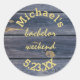 Rustic Blue Wood | Bachelor Weekend Monogram Classic Round Sticker