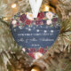 Rustic Blue Wood, Watercolor Burgundy Marsala Floral, Our First Christmas as Mr. and Mrs. Personalised Heart Wedding Ornament with String Lights