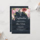 rustic blue wood background with pink peonies coupled with a combination of script and elegant font for you to personalise. White cross give a special touch on this cute religious celebration invitation