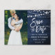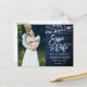 Rustic Blue Wood Lights Brush Script Save The Date Postcard