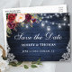 Rustic Blue Wood String Lights Mason Jars Lace Watercolor Burgundy Floral Save the Date Postcard - Printed Back