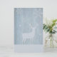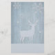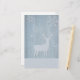 Stationery paper with a blue-toned faux-wood background. Layered over top is a silhouette of a reindeer with big antlers.