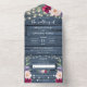 Rustic Blue Wood String Lights | Burgundy Wedding All In One Invitation