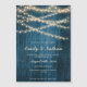 Rustic Blue Wood String Lights Wedding Invitation . This exquisite invitation seamlessly combines rustic charm and timeless elegance, setting the perfect tone for your special day.