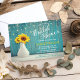 Rustic pretty bridal shower invitation features a blue wooden background, bright sunflowers in a classic white vase, and delicate string lights for the perfect mix of charm and style. This elegant bridal shower template is easy to personalise for your special celebration. Make your event memorable with this lovely invitation. Add your personal touch and invite guests in style.