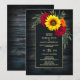 Rustic Blue Wood Sunflower Burgundy Rose Wedding Invitation
