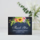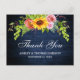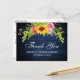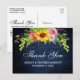 Rustic Blue Wood, Watercolor Sunflower Floral with Roses, Peonies and Greenery Wedding Thank You Postcard