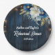 Rustic Blue Wood White Floral Rehearsal Dinner Paper Plate