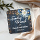 Rustic Blue Wood White Floral Sunday Brunch Square Sticker
