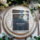 An elegant Wedding design with elegant calligraphy completed by wonderful blue wood, garden string lights and white blue floral with gold glitter. You can personalise this with your details.