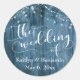 Rustic Blue Wood & White Light Strings Wedding Classic Round Sticker