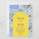 Rustic Blue Yellow Arch Portuguese Tile Wedding Invitation