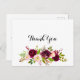 Rustic Blush Burgundy Floral Calligraphy Thank You Postcard
