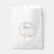 Chic and elegant bridal shower favour bags. A pink cherry blossom wreath surrounds the bride's name, and the date. . A small pink heart is placed in the centre of the favour bag. This bridal shower favour bag is part of the Cherry Blossom collection. It has many coordinating items that you can use to create a unique and personalised bridal shower. If you don't see the link or need help with an item, please contact me.