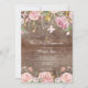 Beautiful pink floral with gold leaves first holy communion invitation set on a rustic brown wood background with a coordinating floral back for an extra special touch.