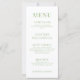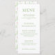 Amplify your wedding experience with these bohemian rustic spring/summer wedding menu cards, adorned with watercolor blush pink green flower blooms, complemented by sophisticated delicate green text.