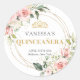 Rustic blush pink roses eucalyptus Quinceañera Classic Round Sticker