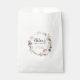 Chic and elegant bridal shower favour bags. A floral wreath surrounds the bride's name, and the date. Blush pink roses and dark green leaves. A small pink heart is placed in the centre of the favour bag. This bridal shower favour bag is part of the Summer Romance collection. It has many coordinating items that you can use to create a unique and personalised bridal shower. If you don't see the link or need help with an item, please contact me.
