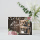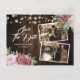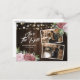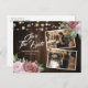 Elegant rustic blush pink floral wedding save the date photo postcards ideal for a romantic blush pink rustic wedding party. This save the date postcard features a barn wood background adorned with blush pink roses, white floral lace and string lights. Matching items available.