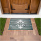 Nautical boating doormat on printed grey turquoise driftwood reading your custom boat name surrounded by a ship's well and anchor.