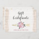 Rustic Bohemian Floral Arrow Gift Certificate Card