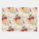 Beautiful boho-inspired wrapping paper sheets featuring vintage watercolor flowers mixed with greenery foliage and elegant pampas grass in various shades of red, blush, yellow and green.