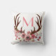 Rustic Bohemian Watercolor Floral Deer Antlers Cushion