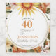 Rustic Boho Autumn Sunflower 40th Birthday Party Wine Label