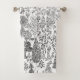 A rustic boho decorative black and white tree-patterned bath towel set. Created by Julie Nicholls©.