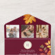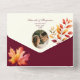 Celebrate your love with this burgundy rustic fall wedding all-in-one invitation. Featuring watercolor autumn leaves, a photo section, and a convenient QR code for RSVP. Perfect for seasonal weddings, this eco-friendly design offers a fold-and-send format.