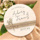 Rustic Boho Burlap Floral Wood Wildflower Wedding Classic Round Sticker