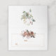 Rustic Boho Butter Rum and Rust Watercolor Roses Bouquet with feathers, leaves and natural greenery Folded Place Cards. The text is a shade of rust from the flower bouquet. If you need to move the text, or change the size, font, or colour of the text, click Customise It.