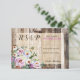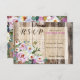 Rustic bohemian chic flowers over barn wood planks background RSVP card.