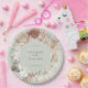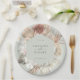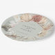 Beautiful rustic boho-chic dried palm fronds, roses and orchid geometric frame on silver sage green colour background, personalised paper plates. Designed to match our Bohemian Oasis Wedding Collection.