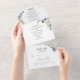 Rustic Boho Dusty Blue Flowers Script Wedding All In One Invitation