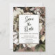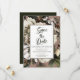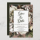 An ethereal boho floral bouquet in shades of winter white and dusty pink with seasonal evergreen greenery is underlaid over a dusty pink background inviting your guests to "Save the Date" for what is sure to be a memorable rustic wedding occasion. The back features a dark evergreen background. Text colour is dark evergreen. Simply add your names and wedding details to complete. "Save the Date" text can only be edited by designer, but remaining text is editable. Composite design by Holiday Hearts Designs (rights reserved).